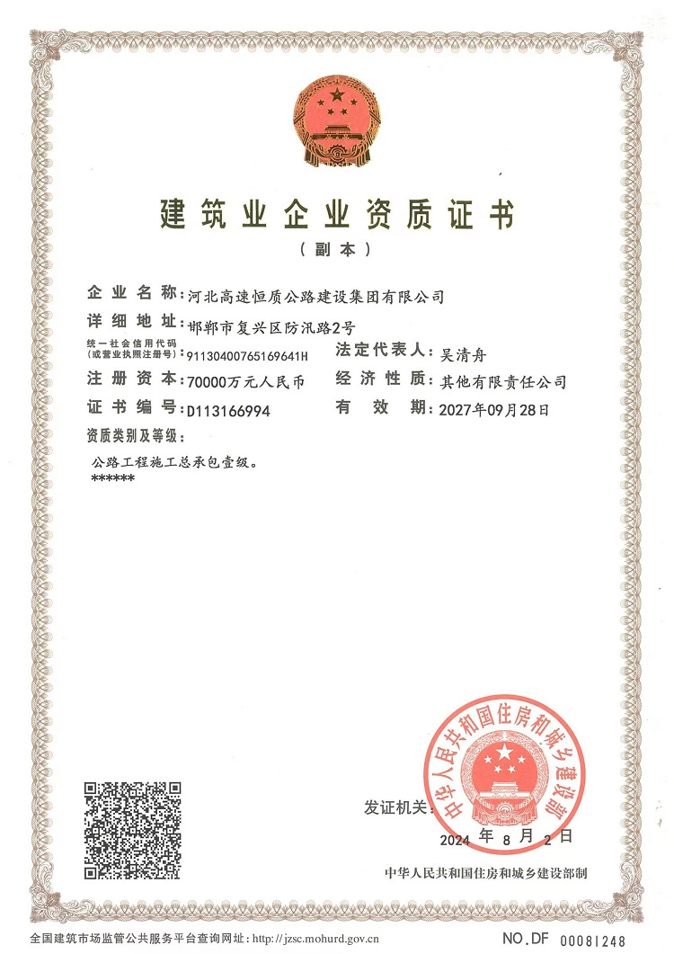 公路養(yǎng)護作業(yè)單位資質(zhì)證書
